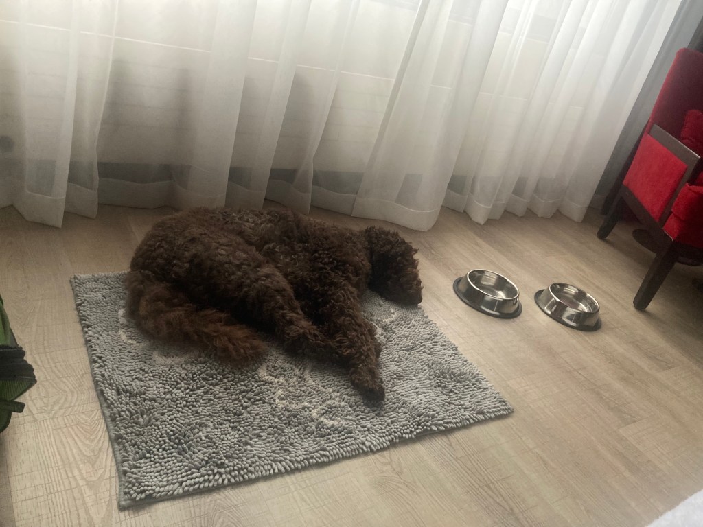 Da es im A- Wurf 8 Rüden und nur eine Hündin gab und wir eine super Familie für Arina hatten, entschieden wir uns sie ab zu geben und diese Kombination nochmals zu wiederholen, damit wir eine Hündin behalten konnten. Dafür machten Mocca und ich uns an Weihnachten ’22 nochmals auf den Weg zu Jamie und Wilma nach Rotterdam .